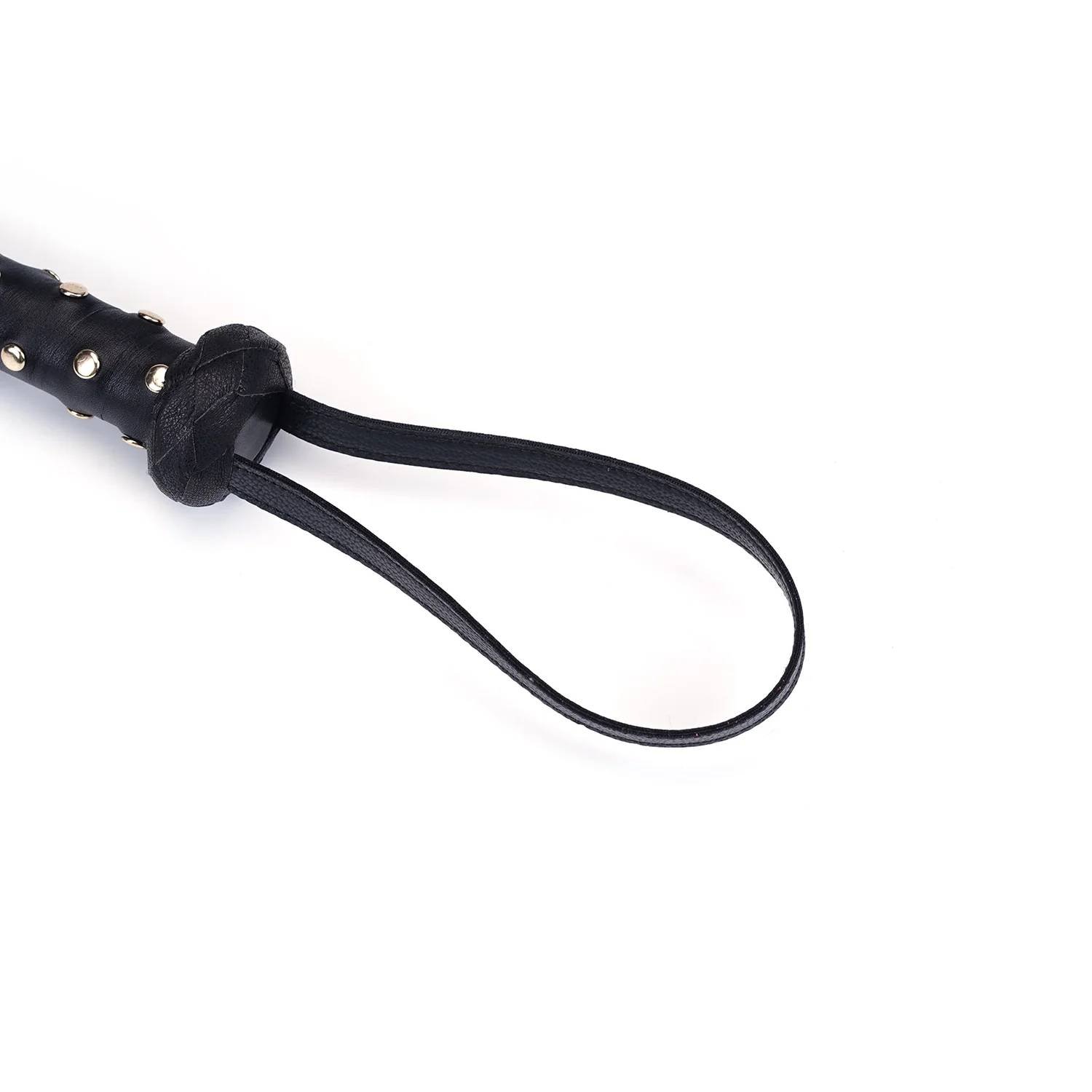 Dzięki solidnej skórzanej pętli na nadgarstek, flogger gwarantuje pewny chwyt i precyzyjne zamachy, dostosowane do Twoich preferencji. Metalowe ćwieki na rękojeści zapewniają dodatkowy uchwyt, umożliwiając pełną kontrolę. Gładkie skórzane liście pozwalają na delikatne pieszczoty lub intensywne doznania, oferując wszechstronność w grze BDSM.