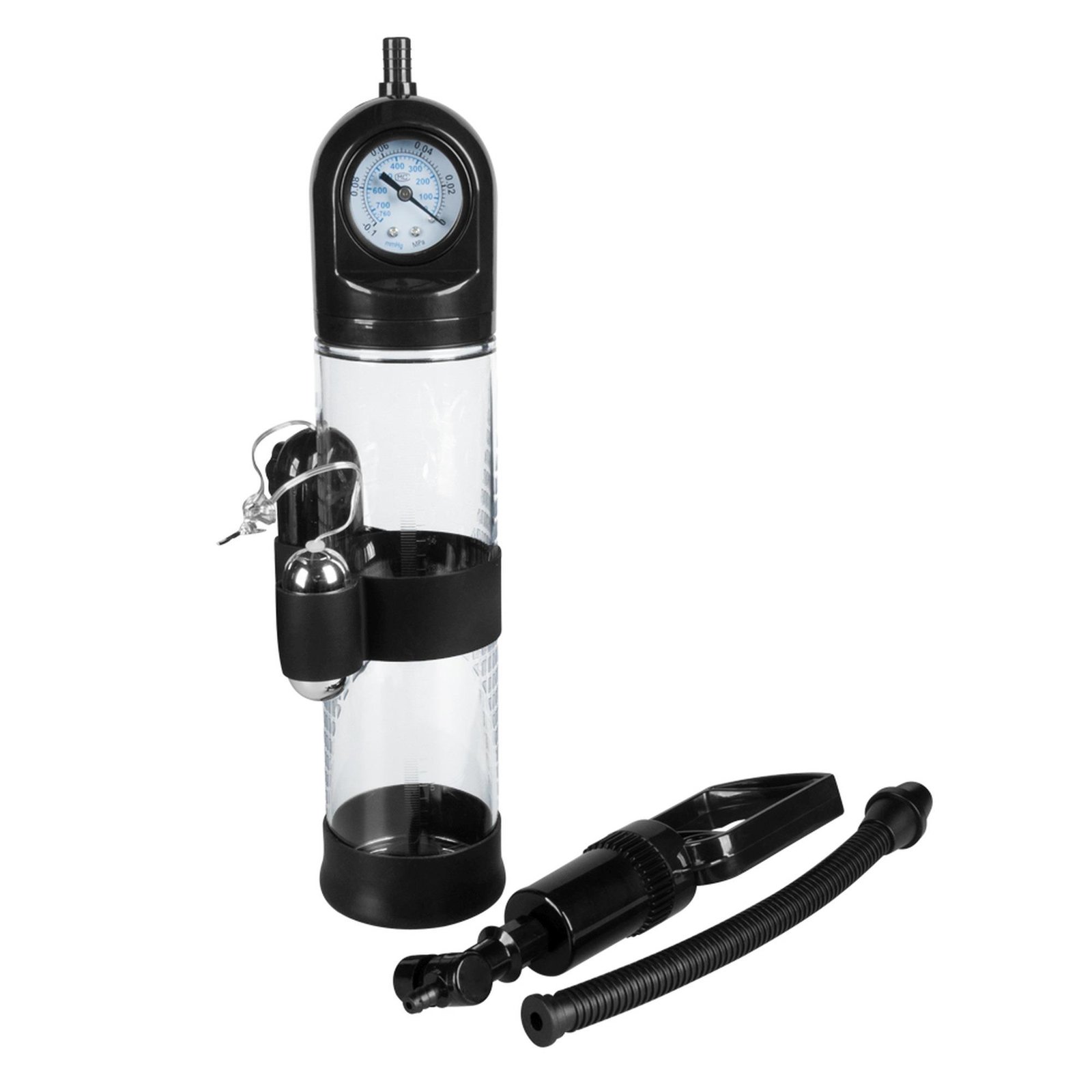 Pompka do penisa z manometrem B-Series Power Vibrating długość 20 cm średnica 6 cm czarna