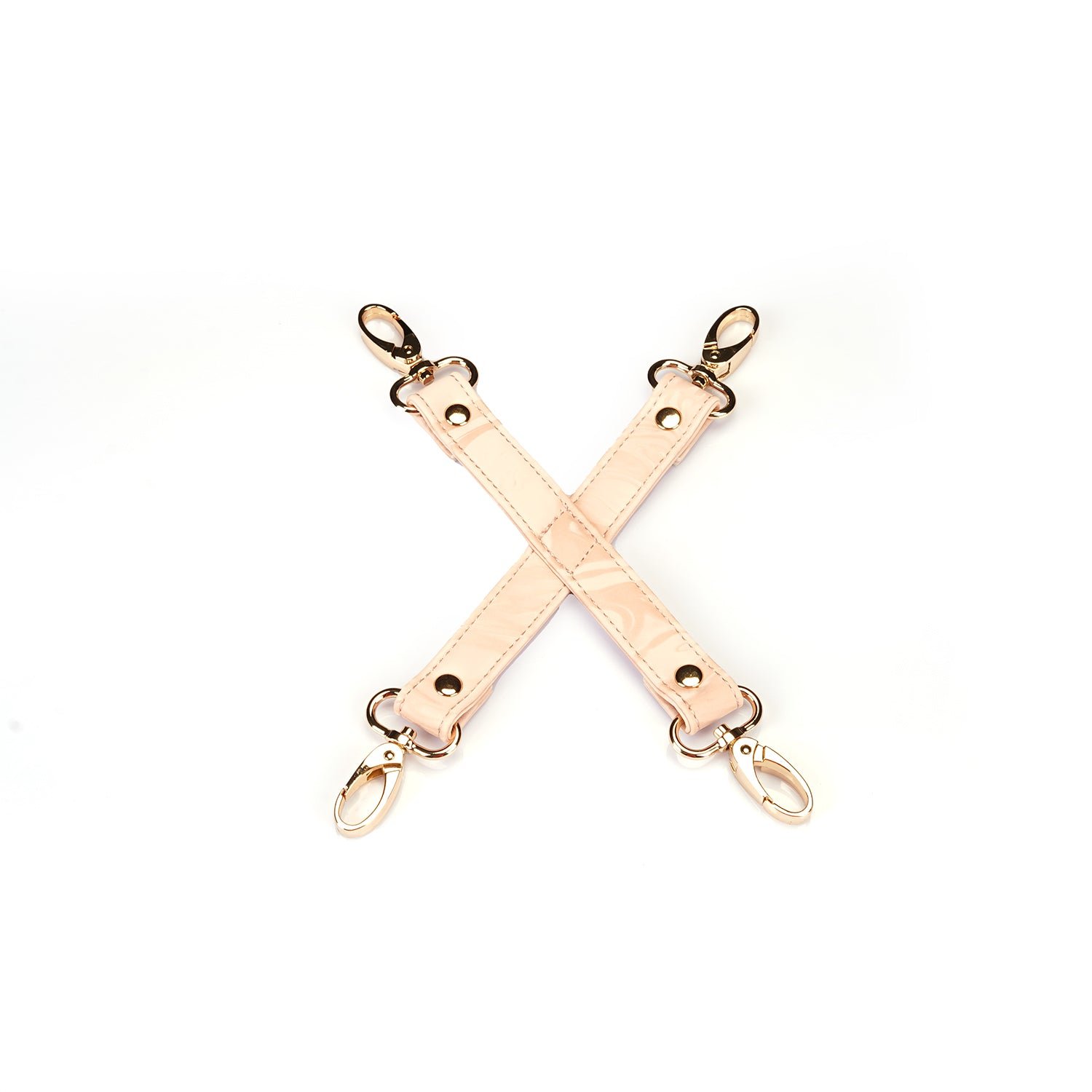Hogtie wyposażony jest w lśniące złote okucia oraz cztery klipsy do szybkiego zwalniania, zapewniając bezpieczeństwo i komfort. Dzięki temu możesz oddać się pełni wrażeń, ciesząc się spokojem ducha.